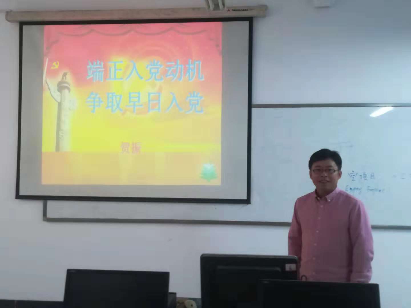 首先,贺振对入党誓词进行了介绍,然后从入党动机开始,对为什么要端正入党动机、怎样端正入党动机、入党动机的分类进行了剖析,并就如何早日成为一名合格的共产党员这一主题进行了讲解。