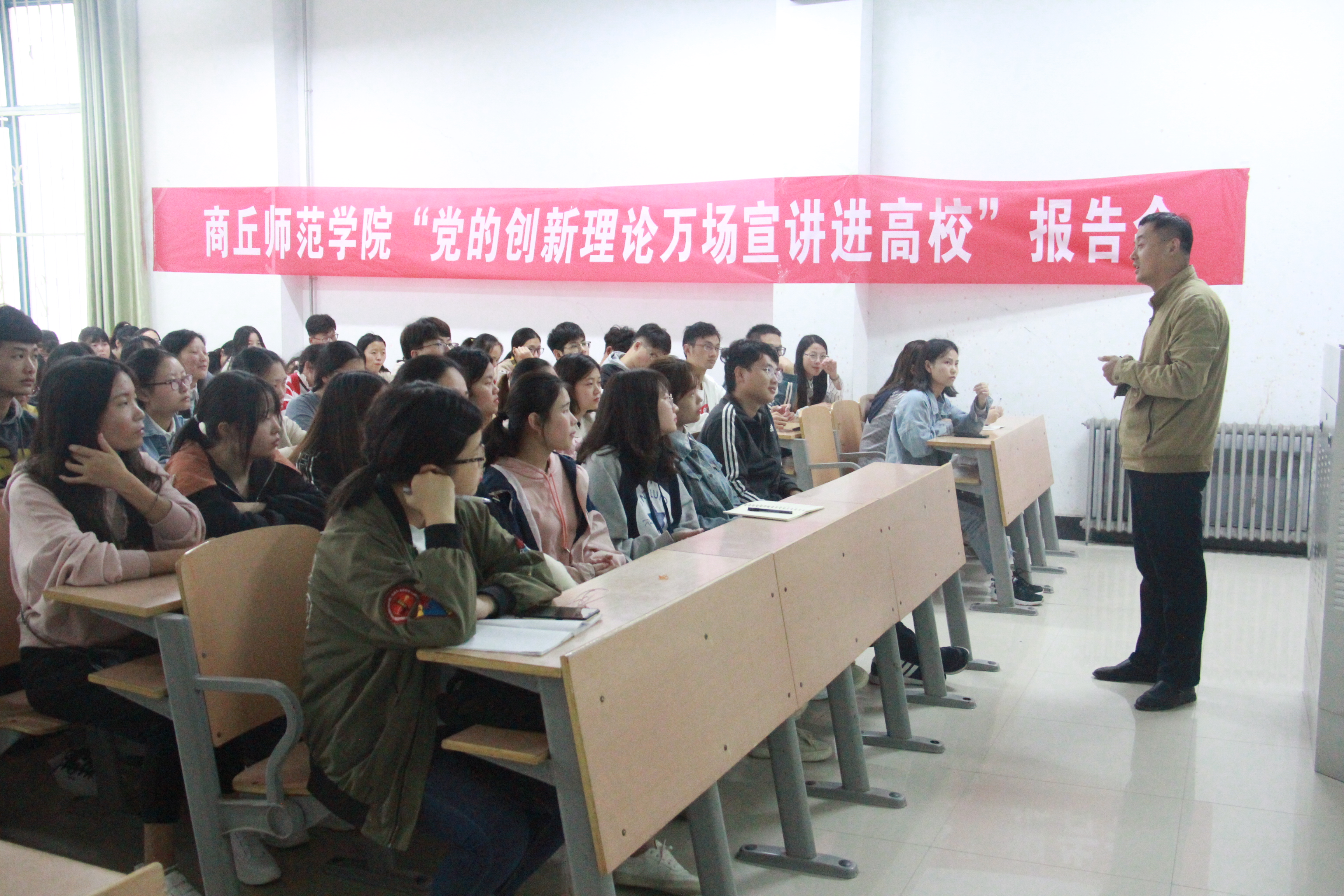 10月11日,m88help于梁园校区举办“党的创新理论万场宣讲进高校”报告会,辅导员宣讲团成员魏理,以“正确认识新中国七十年发展的历史逻辑”为题,为全院员工党员和入党积极分子上了一堂生动的党课。