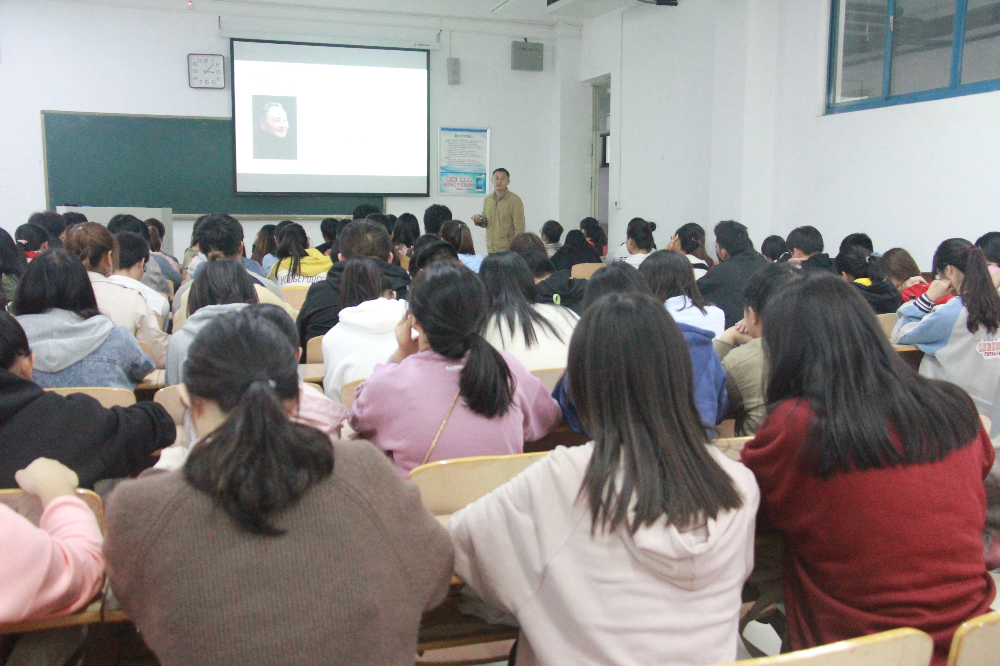 魏理以新中国成立七十周年为背景,以改革开放为主线,为同学们讲解了国家在这期间发生的重大变化。他从“新中国特色社会主义的探索历程”、“中国共产党人的初心和使命”和“中国共产党的坚强领导”三个方面来阐述了中国共产党的发展史和奋斗史。