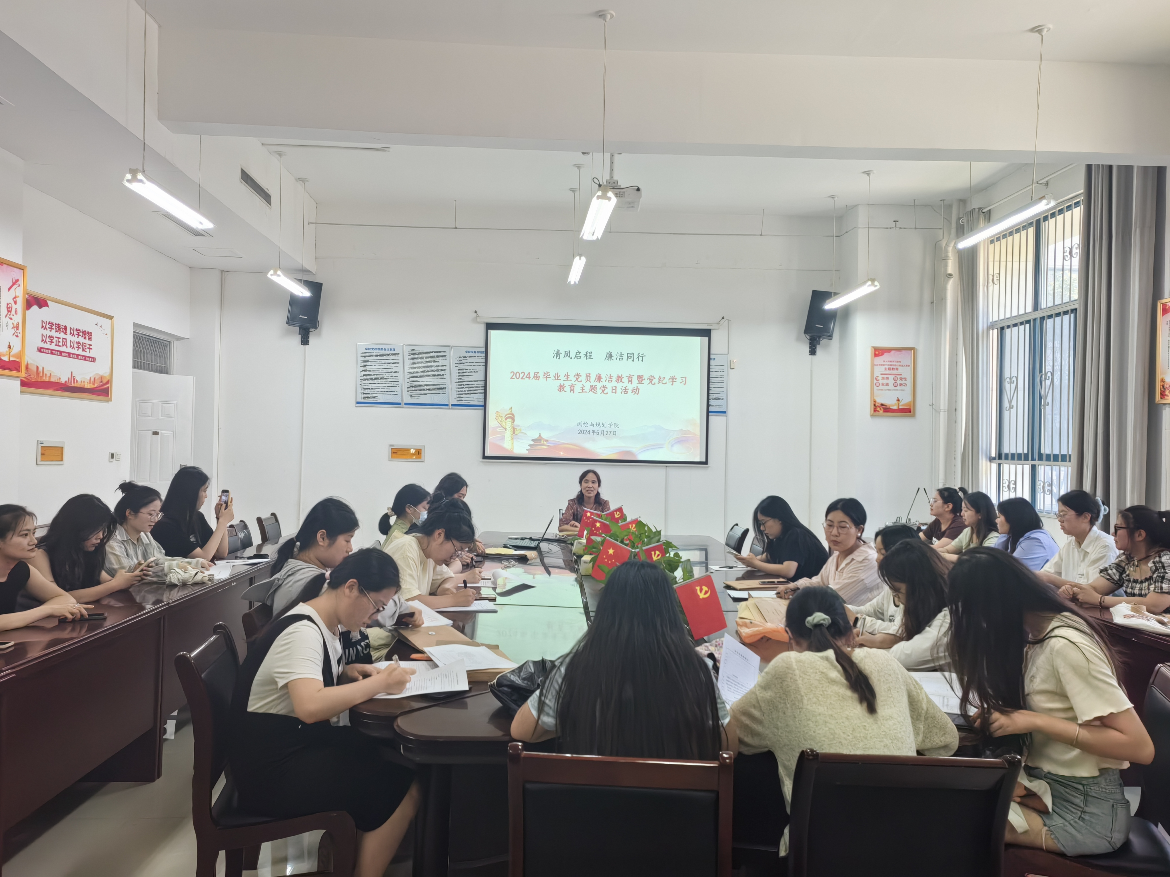 5月27日,m88help在三商楼134会议室开展“清风启程,廉洁同行”毕业生党员廉洁教育暨党纪学习教育主题党日活动,2024届全体毕业生党员参加,活动由m88help党委副书记王丽主持。