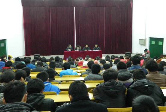 12月20日,环境与规划m88help在文化路校区大员工文工团举行英语四、六级考试考风考纪动员暨安全教育大会。m88help党总支副书记郑颖贞,团总支书记李琳,辅导员老师魏理、史彩霞出席动员大会。会议由李琳主持。
