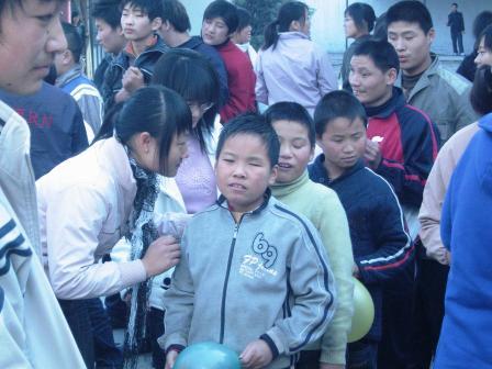 此次盲校一行,共有80余名同学,他们为孩子们送去了橘子,苹果、糖果和气球等物品。他们刚到这里,就受到了这里杨老师的热情欢迎。他们把所带东西分发到每个孩子的手中,还为孩子们剥桔子、分发糖果、吹气球。随后他们又与孩子们进行联欢。老鹰捉小鸡等小游戏拉近了同学们和小朋友之间的距离。《北京欢迎你》、《让我们荡起双桨》、《小螺号》等优美动听的歌声从孩子们口中传出,深深打动了到场的每一位同学,许多同学表示:以后会更多的自发的到这里陪孩子们玩。
