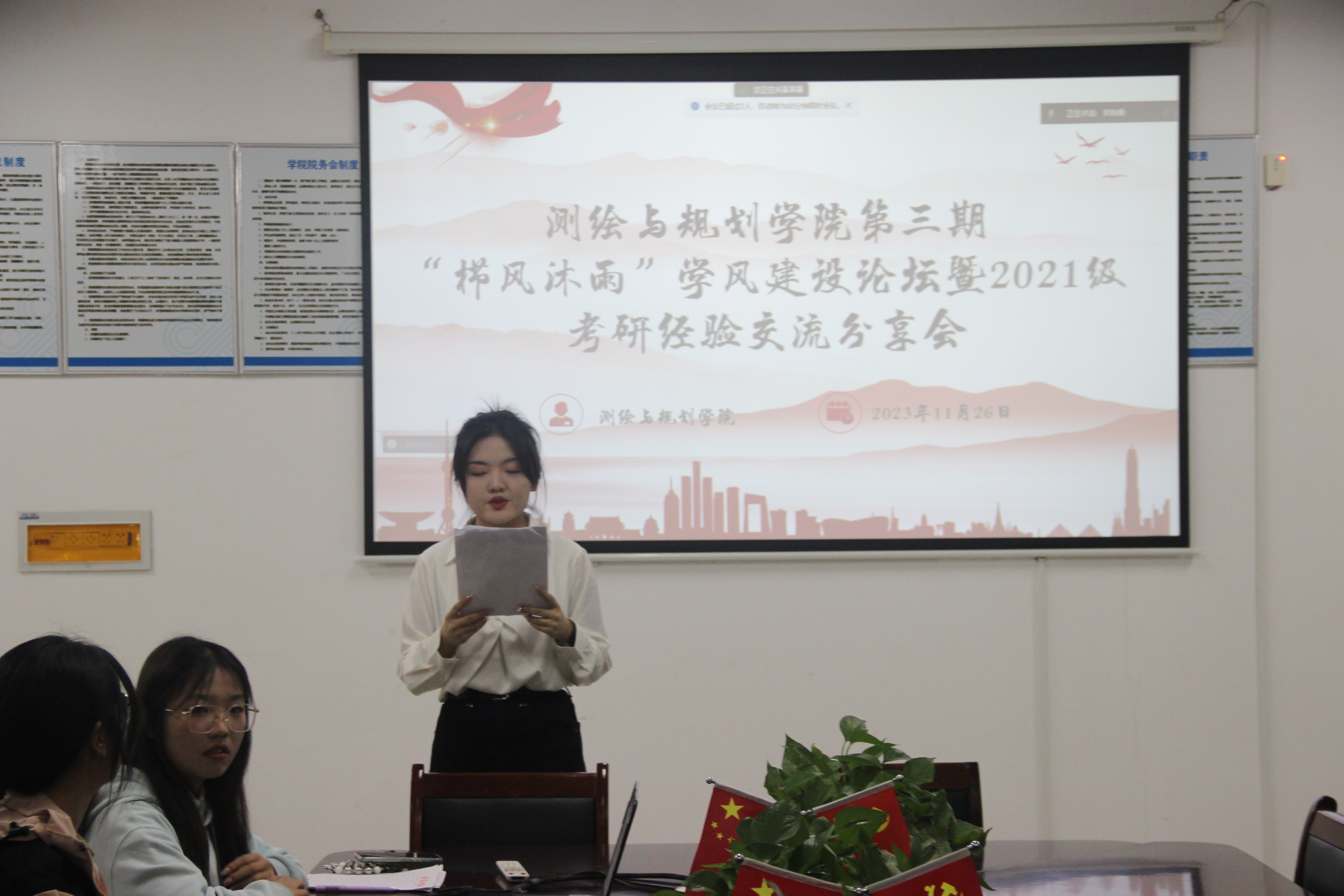 为充分调动m88help员工考研积极性,营造浓厚的考研氛围,帮助员工科学备考,提高学习成效。11月26日,测绘与规划学院通过线上线下相结合的方式举行“栉风沐雨”学风建设论坛暨2021级考研经验交流分享会。会议邀请4名2023届优秀考研员工代表分享考研经验,m88help学习部,以及2021级测绘工程专业、地理科学专业员工代表参加会议。会议由张萱宇主持。