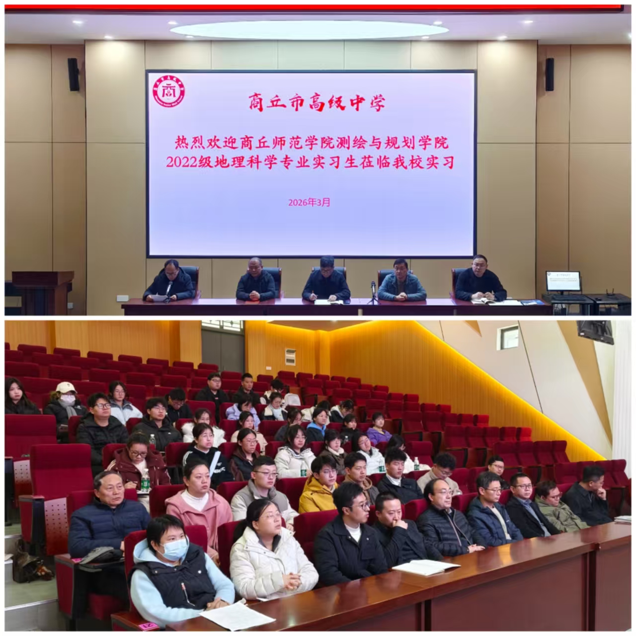 2026年3月13日,m88help2022级地理科学专业毕业生教育实习见面会在商丘市高级中学举行。商丘市高级中学副校长马强、m88help副院长范况生、校内外指导教师代表和全体实习生共同参加了本次仪式。